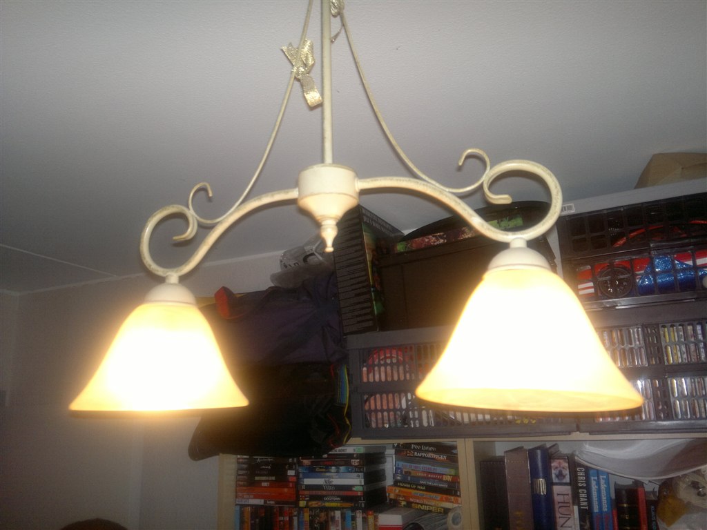 billede 1: Vi har brugt den til over sofabordet men kan bruges andre steder også.. Der er også det der mønster på skærmene, 150 (kan se der er en sløjfe på, den kommer selvfølgelig af)