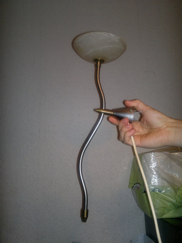 billede 3: 2 enkelt lamper, lyser enten op eller ned, samme design som billede 1. Den ene er aldrig brugt da vi kun havde plads til den ene hvor vi boede før. nypris 209 pr stk, nu 2 for 150