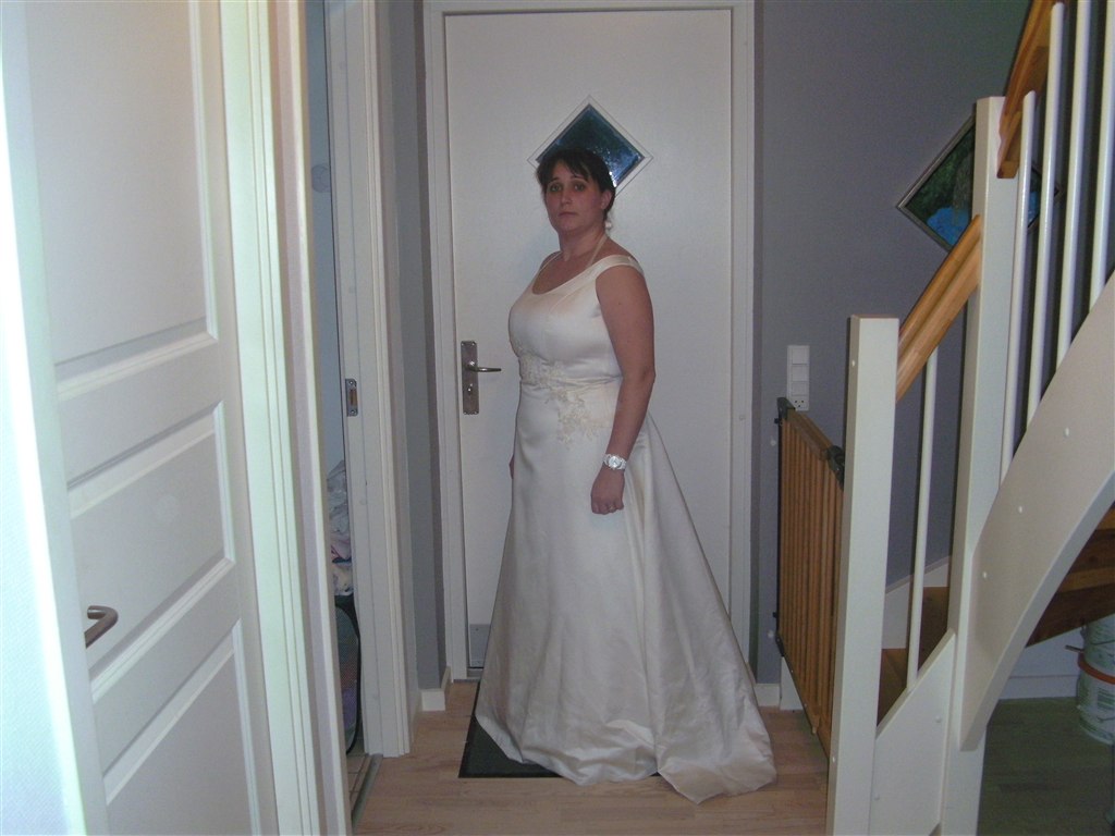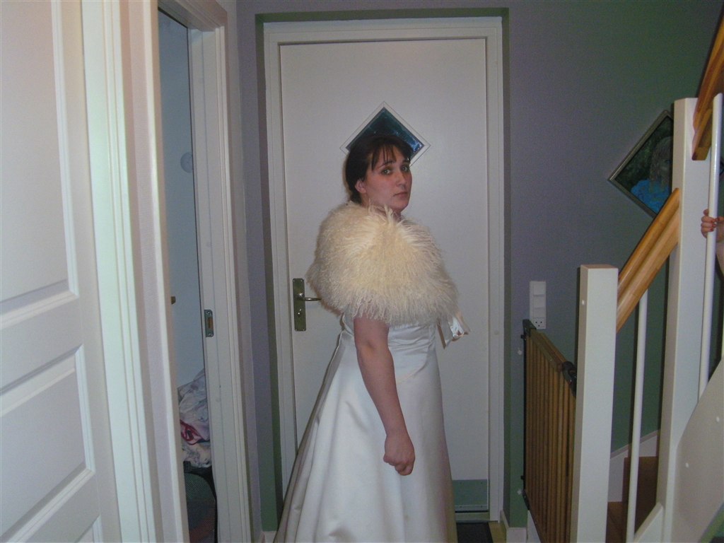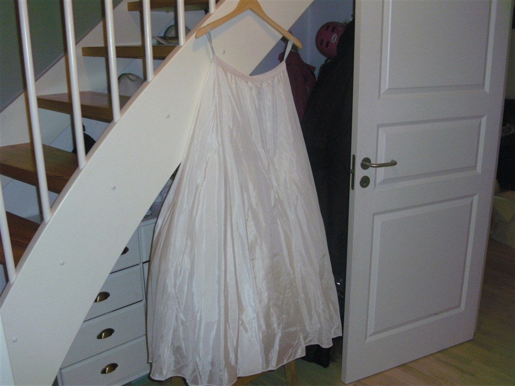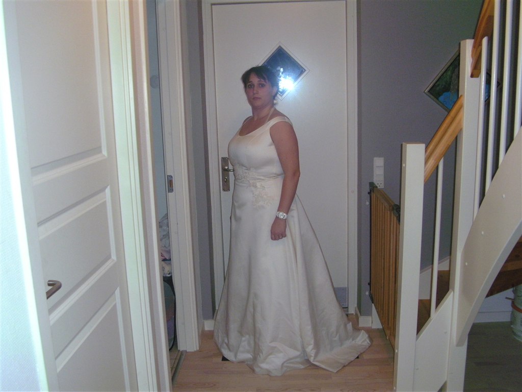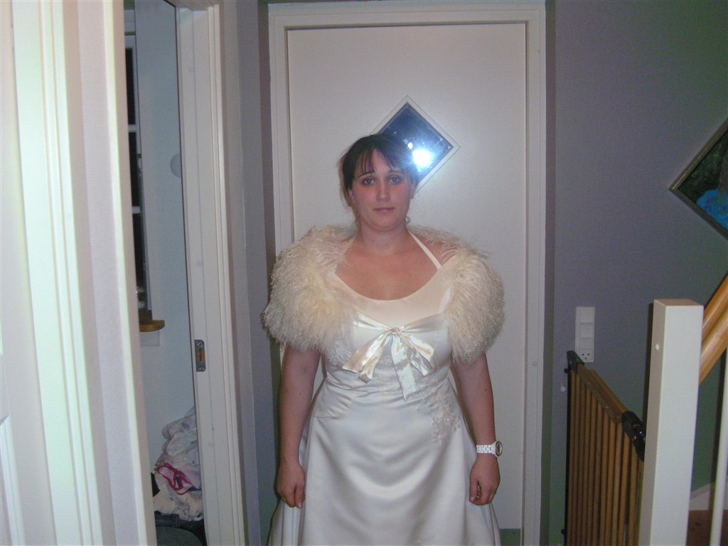 den har kun været brugt den ene aften, men den hænger jo og fylder i mit skab, og jeg har ingen planer om at skulle giftes igen.