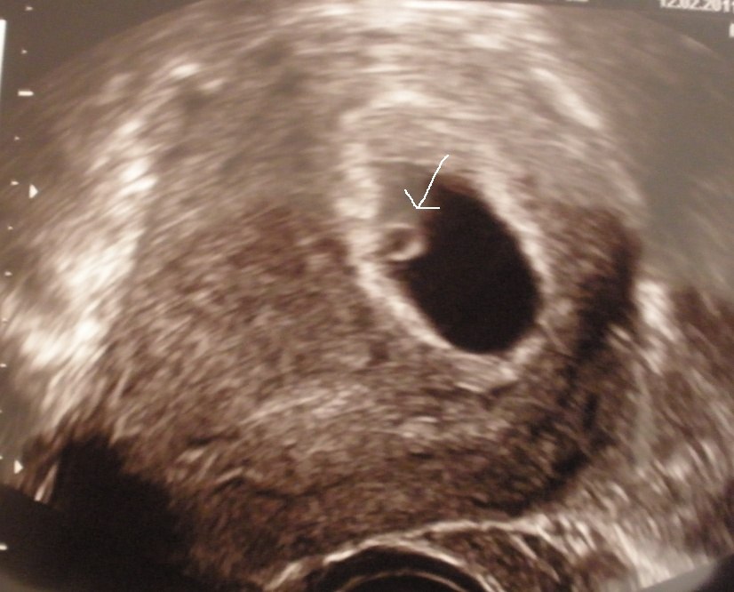Hun sagde dog, at hun ikke mente jeg var 7+0, hvilket jeg er enig i, da jeg ikke kunne teste positiv på 28. dagen. Hun sagde at hun mente jeg var 6+et eller andet, men hun vidste ikke præcis hvor meget. Det kunne hun se dels ud fra størrelsen, og også fordi at de små fosteres hjerter normalt blinker hurtigere end vi andres, men i starten blinker de i samme hastighed som vores, og det var dén hastighed det lille foster blinkede med. Ergo mente hun, at hjertet ikke havde banket så længe.