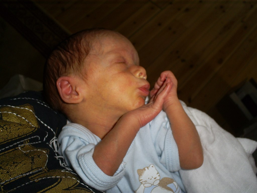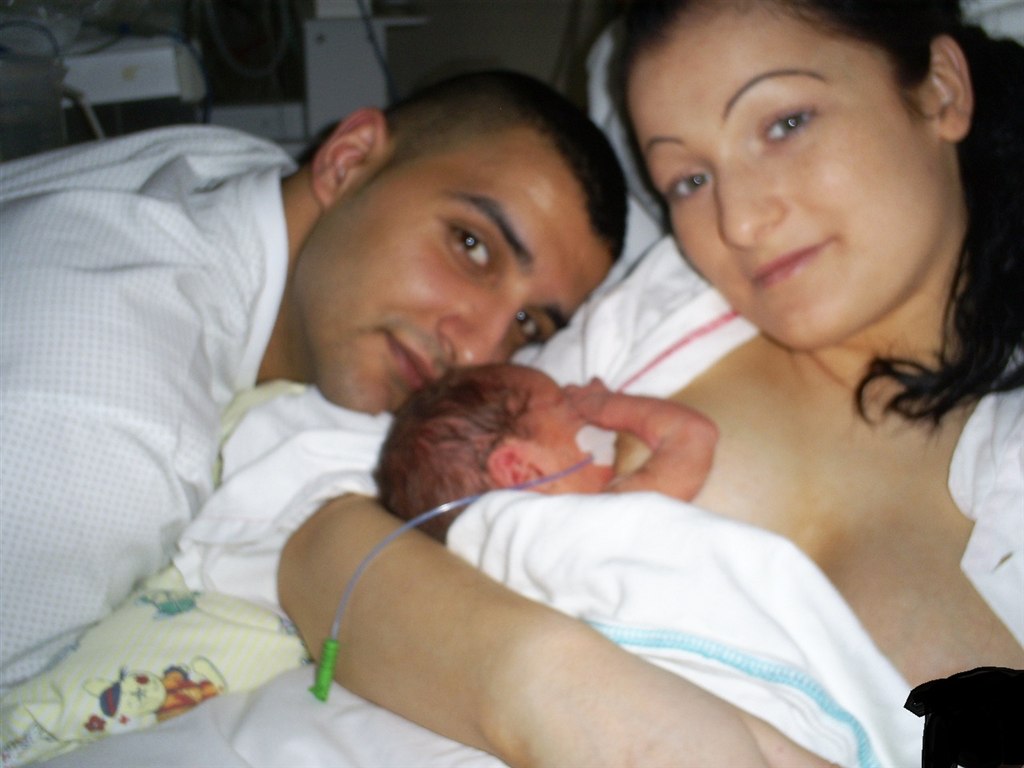 Vi aftaler så, at min mor går med ned til oprationsstuen og Serdar går over på neo afdelingen og venter på Malik. Kl. 15:45 kommer Malik til verden. Han er 43cm lang, vejer 1600g(taber dog 200g) Bliver kørt over på opvågnings afdelingen, hvor jeg lægger i tyve minutter og tigger og ber for at komme op og se min søn. Det giver de mig så lov til. Kl. 16:20 får jeg endeeeeeeeelig min dejlige søn i armene. Vi lå indlagt i 14 dage, hvor han fik sonde mad i 10 dage, imens jeg ammede, han ville rigtig gerne tag fat, han havde bare ikke ret mange kræfter til at spise, så meget af gangen. Malik taber sin sonde på 9 dag, hvor en læge sætter den på igen, dagen efter taber han den igen hvor jeg nægter at han skal udsættes for det endnu engang, og at jeg gerne vil prøve at amme ham hele tiden. Hvilket kun var posivtit, for han vil hellere end gerne ammes ? 14 dage efter, kommer vi endelig hjem, i en lille weekend(1850g vejede han) om mandagen skal vi så op og kontrol veje ham og min lækre figther vejede 2 kilo, så vi blev helt udskrevet.