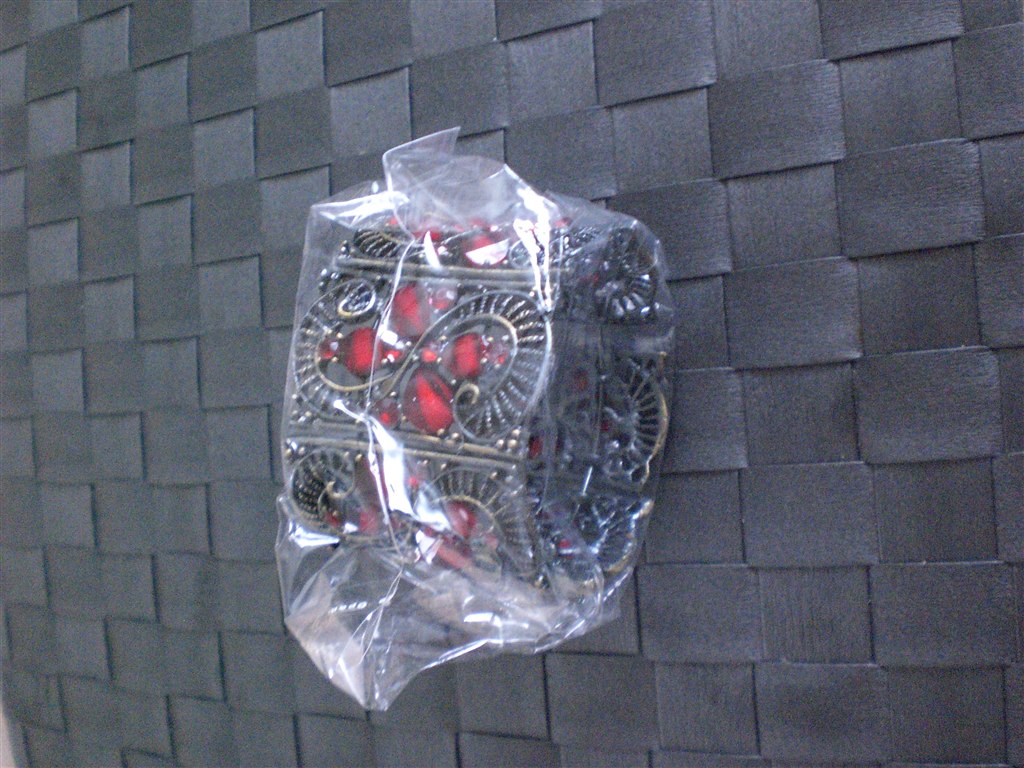 Armbånd med røde, blålilla eller ravfarve 125 kr