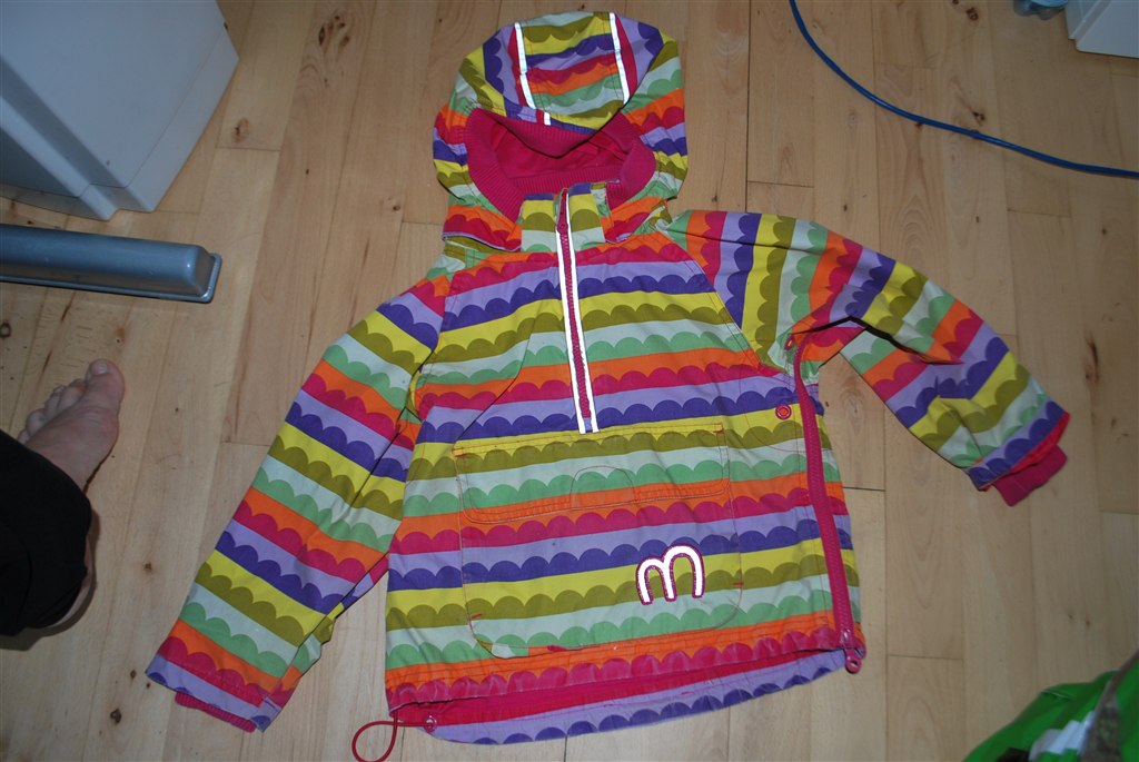 Her byder i på en fed jakke fra minymo str 104 der er en ekstrem lile plet på jakken, man ligger faktisk ikke mærke til det.