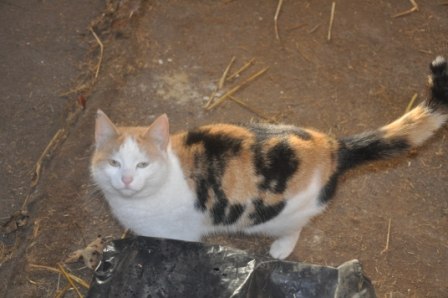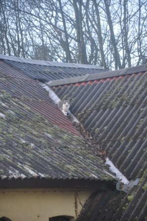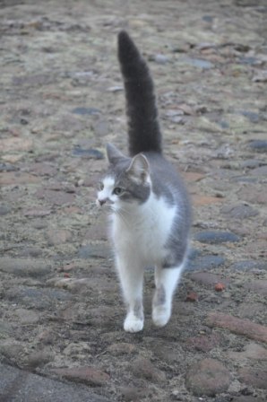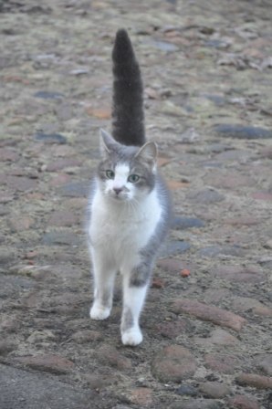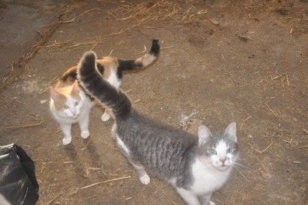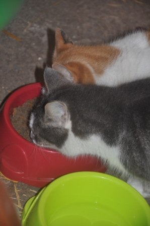 De spiser også godt, der er al den tørkost de kan spise, og så får de rester fra os også, og så er der jo rigeligt med mus at spise. Og tror nu også de ser tykkere ud fordi deres pels er blevet tykkere, der er jo lidt koldere i fyrummet her, end der var hjemme ved jer.