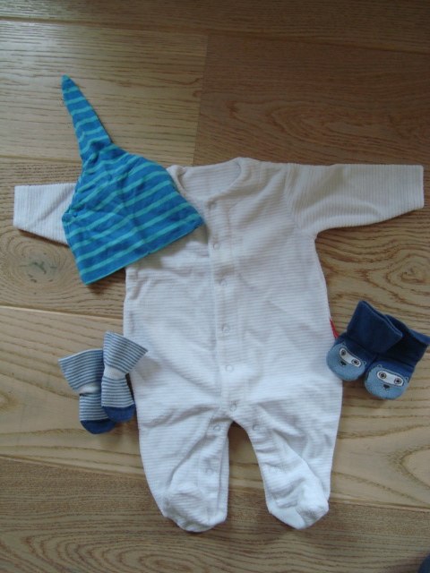 Dejlig dragt m/fødder fra "STORK" (ALDRIG BRUGT, kun vasket)