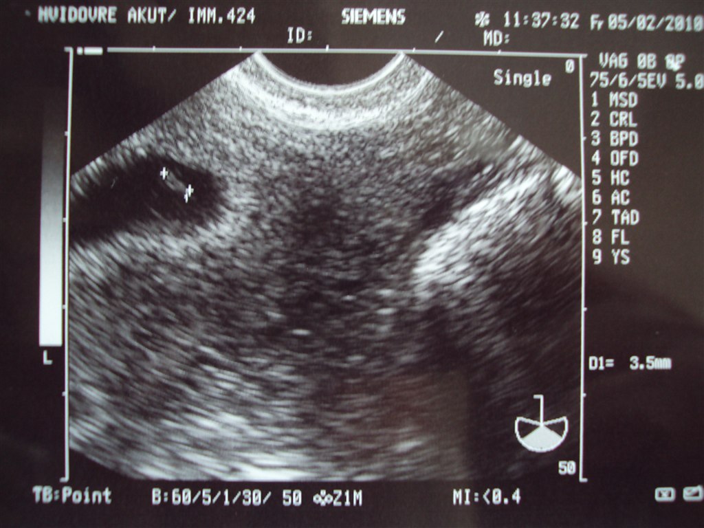 Jeg fik fortaget min scanning da jeg var 5+6, da der var mistanke om en graviditet udenfor livmoderen ..