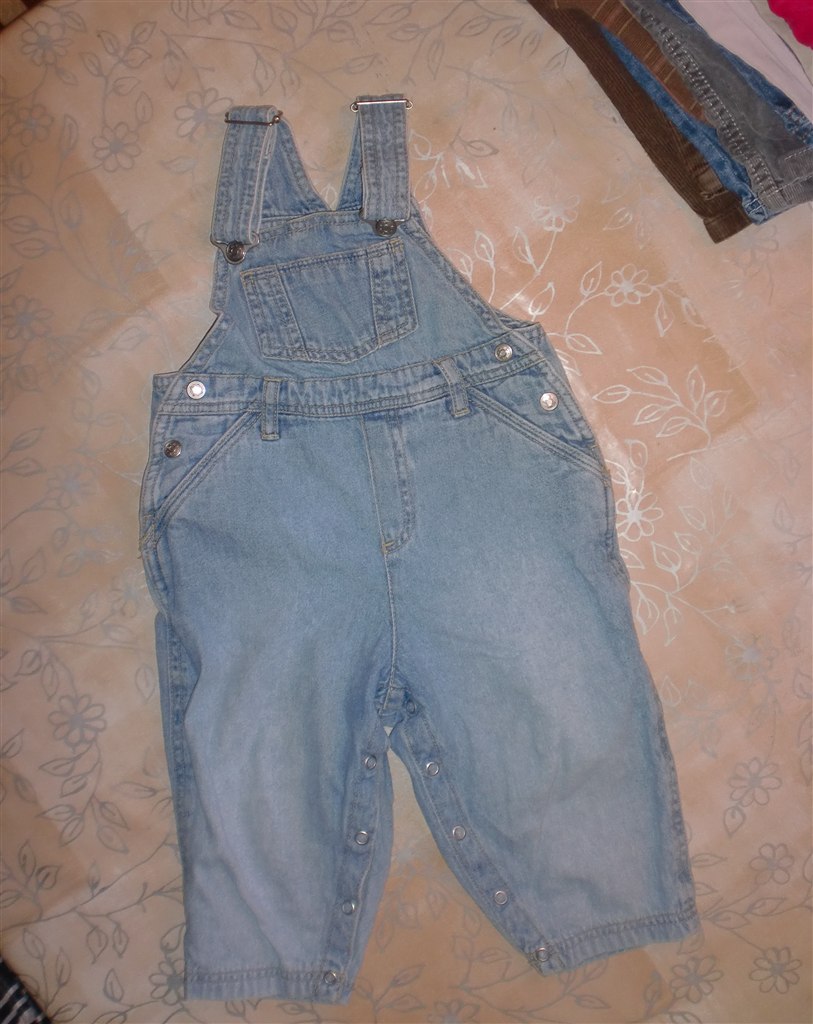 Cowboy-overalls bukser med knapper i skridtet = 35 kr.