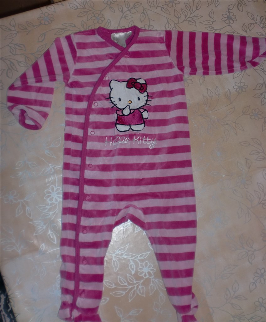 Hello Kitty velour-natdragt med fødder. Helt som ny! = 40 kr.