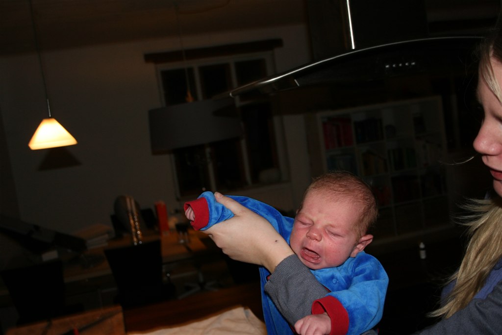 Men status er altså at han har taget 1 kg. på siden han blev født for 3 uger og 6 dage siden! Og vokset 1,5 cm! Hvad skal det da ikke ende med
