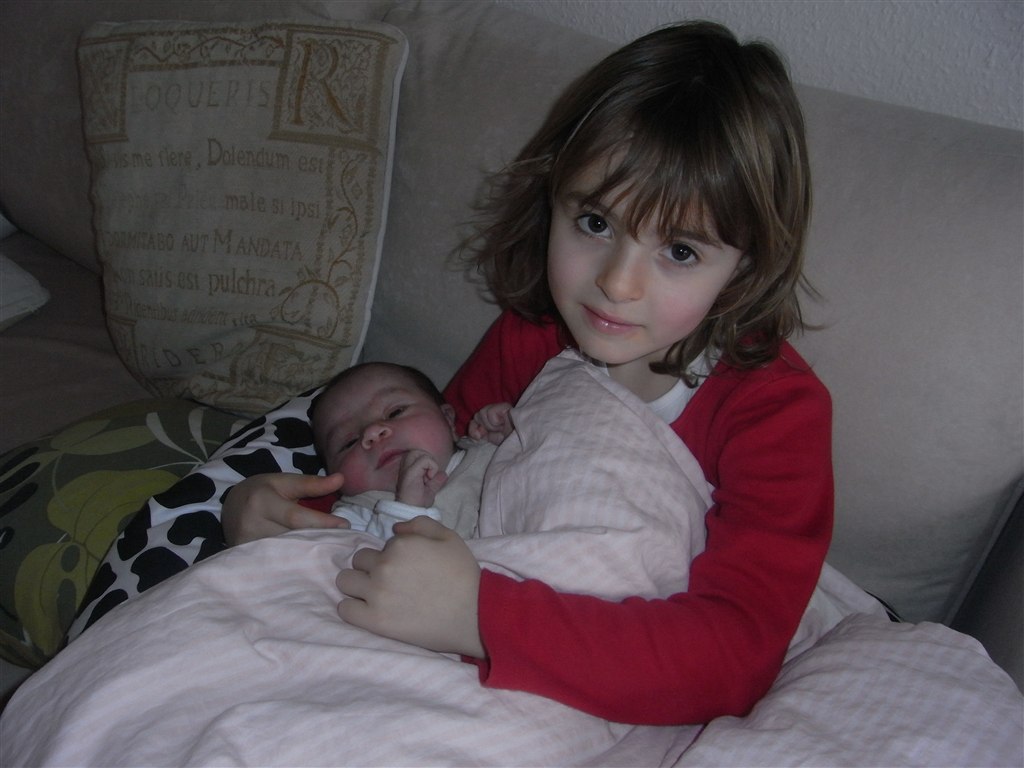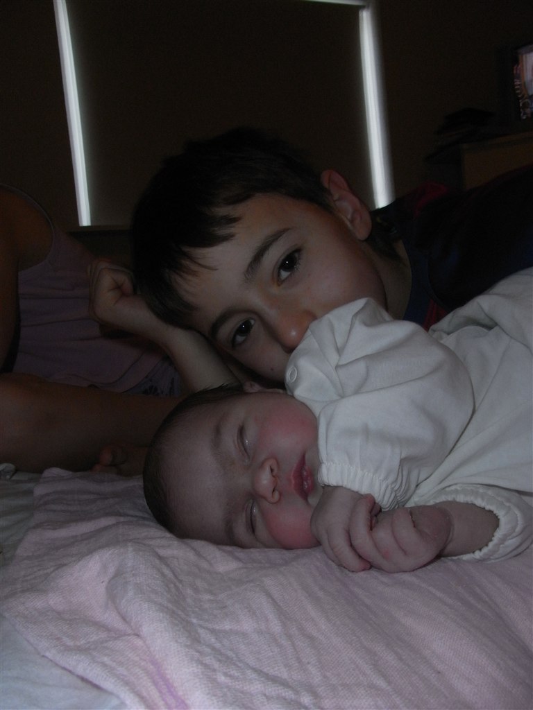 Han ville jo have en lillebror, men det har han totalt taget i sig igen - han vil bare kramme hende og kysse hende hele tiden, så det er bare så dejligt!