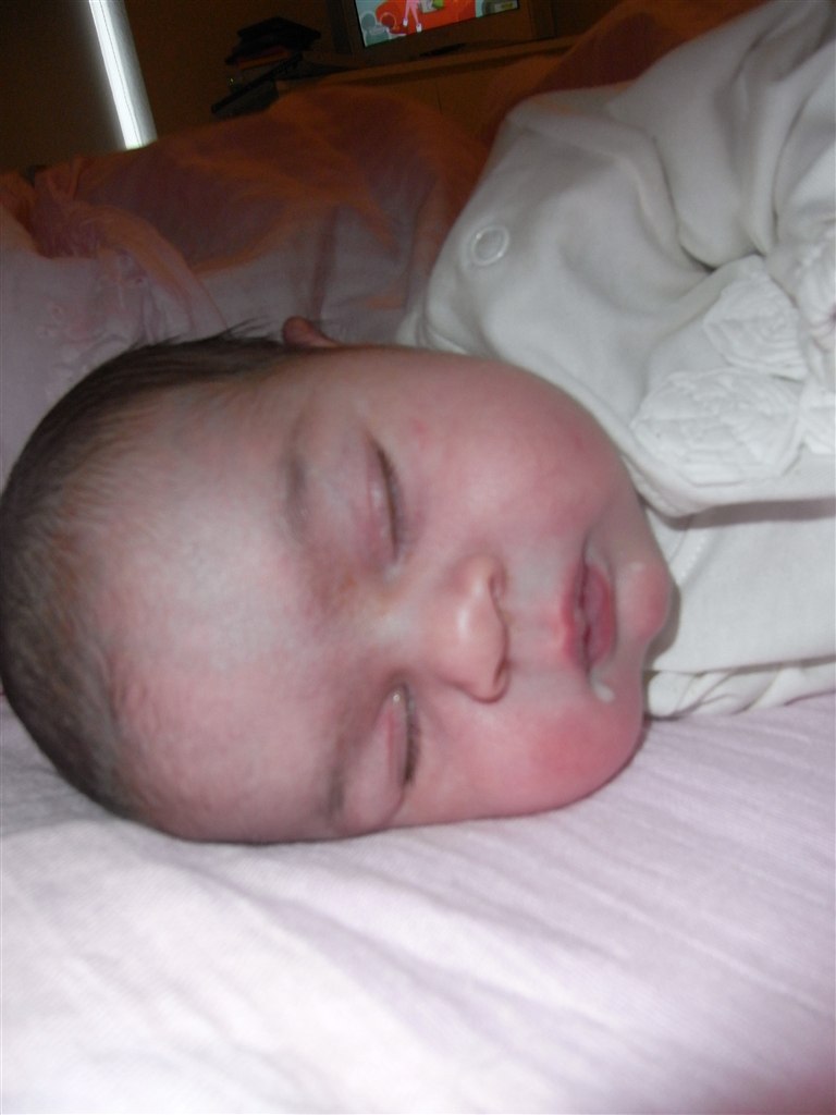 , men inderst inde vidste jeg jo godt, at hun trængte til det. Det var nok til, at hun sov et par timer, og mine bryster fik lidt ro. Mælken løb heldigvis til sidst på eftermiddagen, og hun fik kun MME den ene gang.