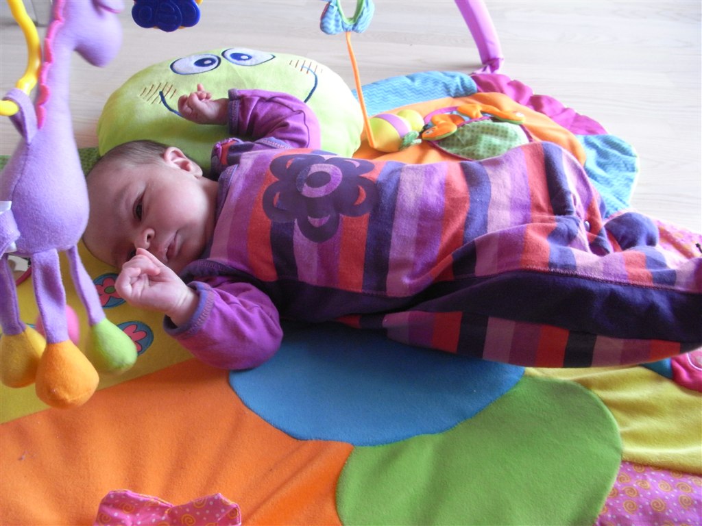 Hun spiser, når hun har lyst og sover som regel 3 timer i træk men tidspunkterne er forskellige. Hun er heldigvis god til at sove om natten. I nat sov hun fra kl. 22 til kl. 3.30, før hun vågnede første gang. Hun faldt i søvn igen med det samme, vågnede igen kl. 6 - spiste og så sov vi ellers videre igen til kl. 9 - dejligt!!