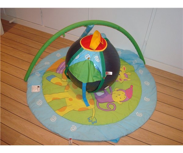 Styrker babys balance samt en go hjælp til at øve ryg, arme, ben og mavemuskler..!! Har været vasket 1 gang i Neutral - fejler absolut intet dog mangler vedhængs-dyr, men vi har brugt andre ting at hænge derpå..!! Senere når baby bliver for stor kan bolden bruges til leg