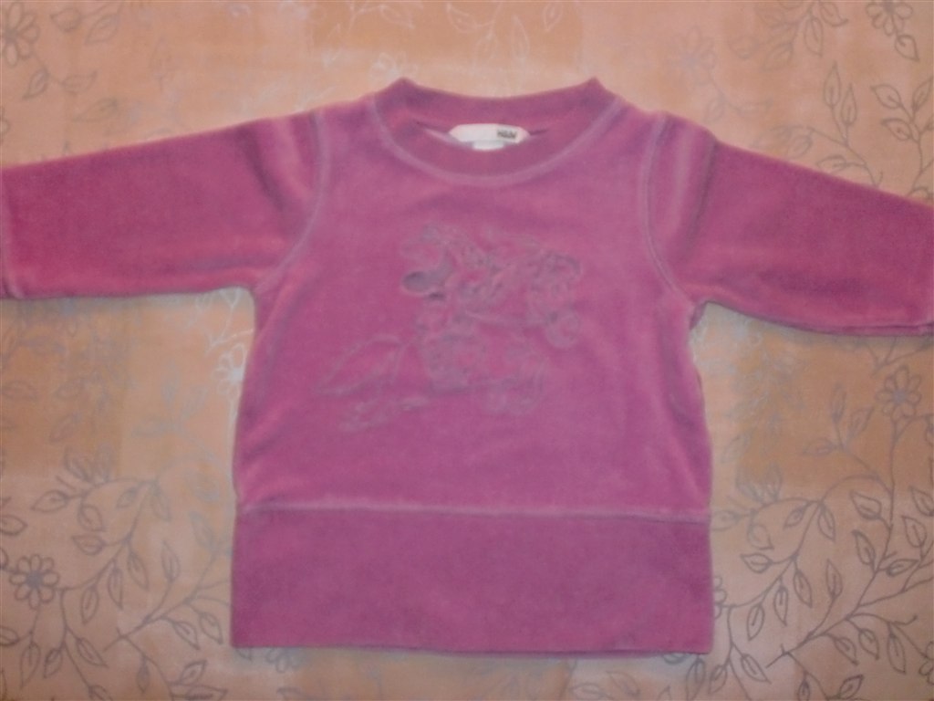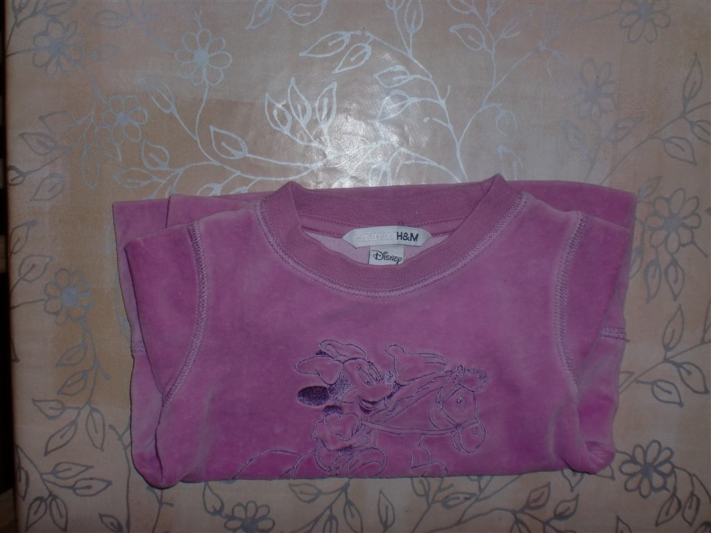 Blød trøje (fra H&M) med motiv af Minie Mouse på en hest = 25 kr.