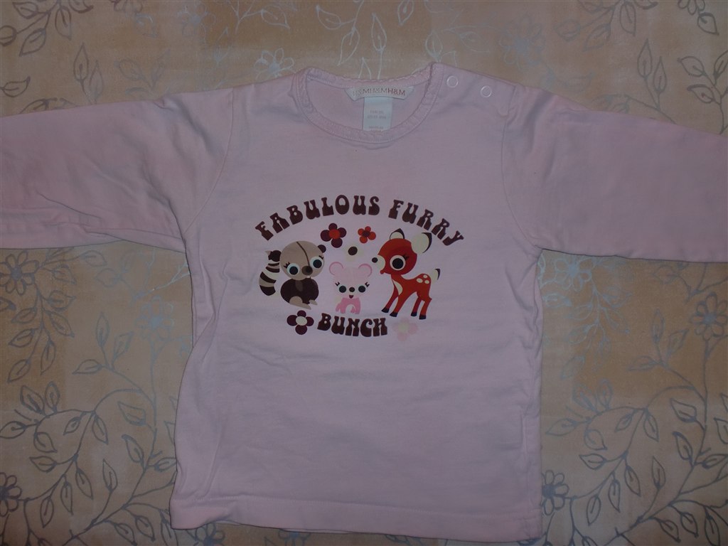 Sød lyserød bluse med dyr (fra H&M) som ny = 25 kr.