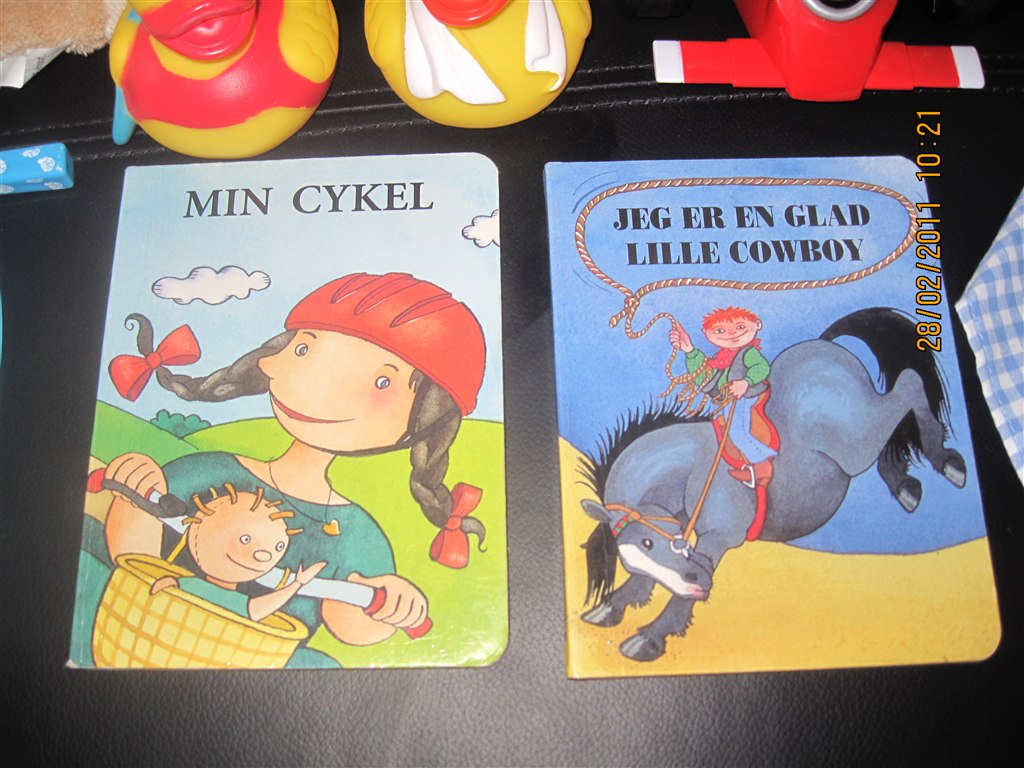 Bøgerne er sangbøger med "min cykel" og "jeg er en glad lille cowboy"