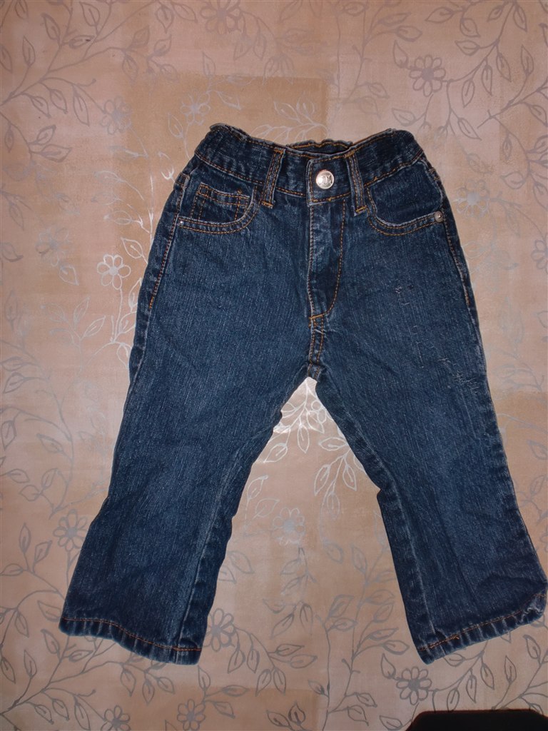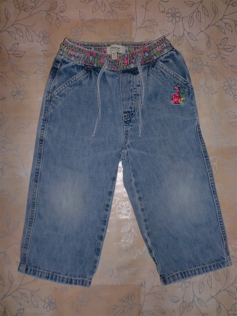 Cowboybukser med blomstret talje og en blomst ved lommen.Størrelse 92 = 30 kr.
