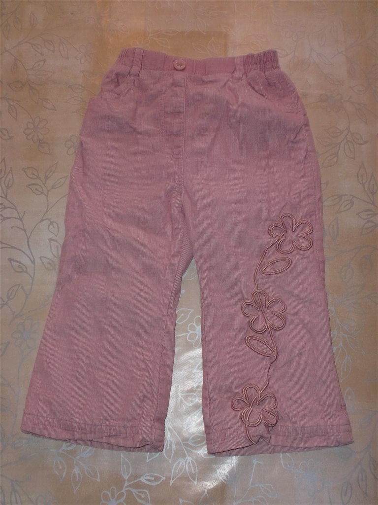 Bløde lyserøde bukser med blomster på det ene bukseben = 30 kr.