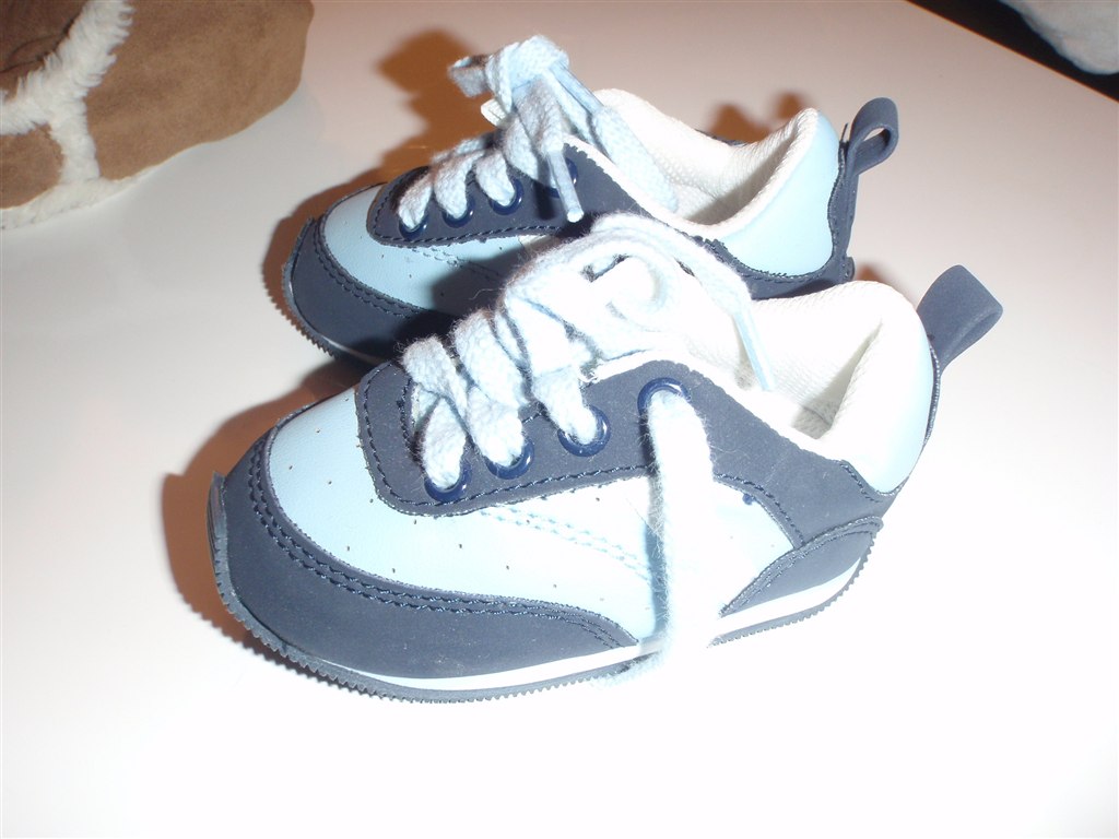 blå sko har du skrevet med hvide snørrebånd det er de sko på din første side