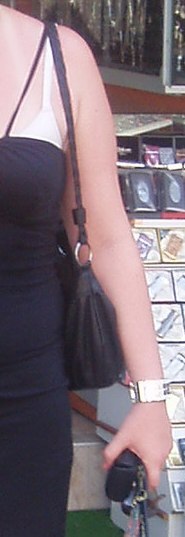 Uuuh ved det faktisk ikke. Så skal jeg have kigget min eksterne igennem imorgen eller lign. men tror det ikke - det er en lille sort en fra "Pieces" med flettet hank, en lille inderlomme med lynlås og en lille lomme til mobil.