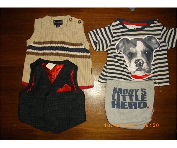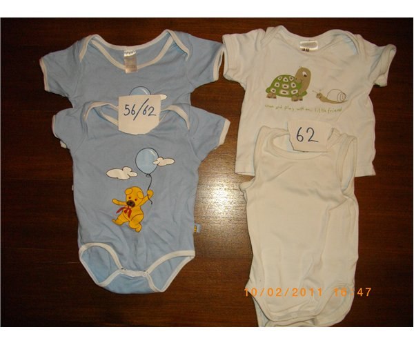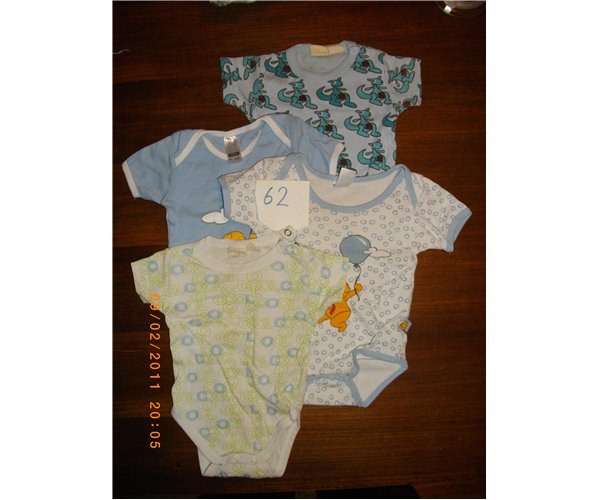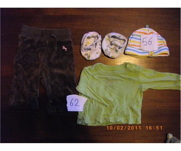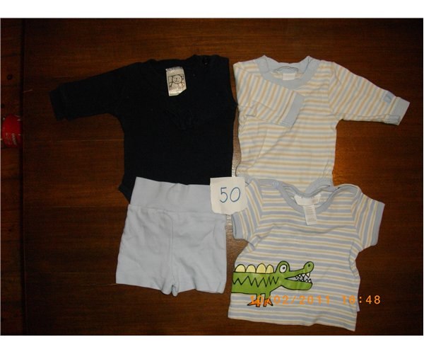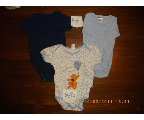 Jeg har lidt over 100 dele tøj. Der er ikke så meget 50 og 56. Der er mest størrelse 62. Noget er mere brugt end andet og noget er som nyt! Tøjet er vasket i Neutral vaske middel og er ikke vasket med skyllemiddel.