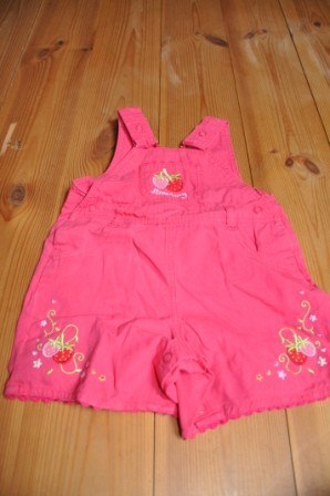Korte sommeroveralls med jordbær på. str. 56/62. 45 kr.