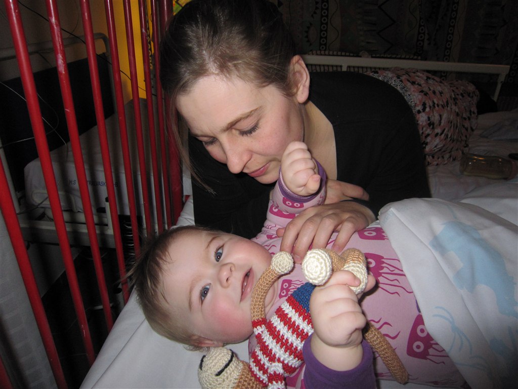 Elina skulle så faste i 6 timer inden selve operationen som var i morges kl. 8. Vi blev hentet ned på operationsgangen og Elina blev lagt på briksen mens hun fik en masse elektroder mv på. Hun var bare så dygtig og sage ikke en lyd. De gav hende så en maske med bedøvelse, og så kom der ellers gang i hende. Hun kæmpede helt vildt, og ville ikke overgive sig, lige inden hun faldt i søvn sage hun moar og så bare så bange ud. Hold kæft hvor var det bare hårdt, så mor her tuede til den store guldmedalje.