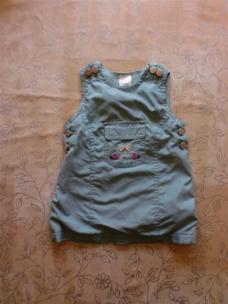 Skøn grøn kjole i blød stof. Fra "Friends", str. 68/74 = 35 kr.Bemærk at de matcher med strømpebukserne fra foto nr. 1. Samlet = 45 kr.
