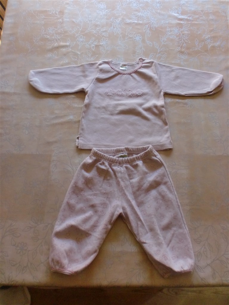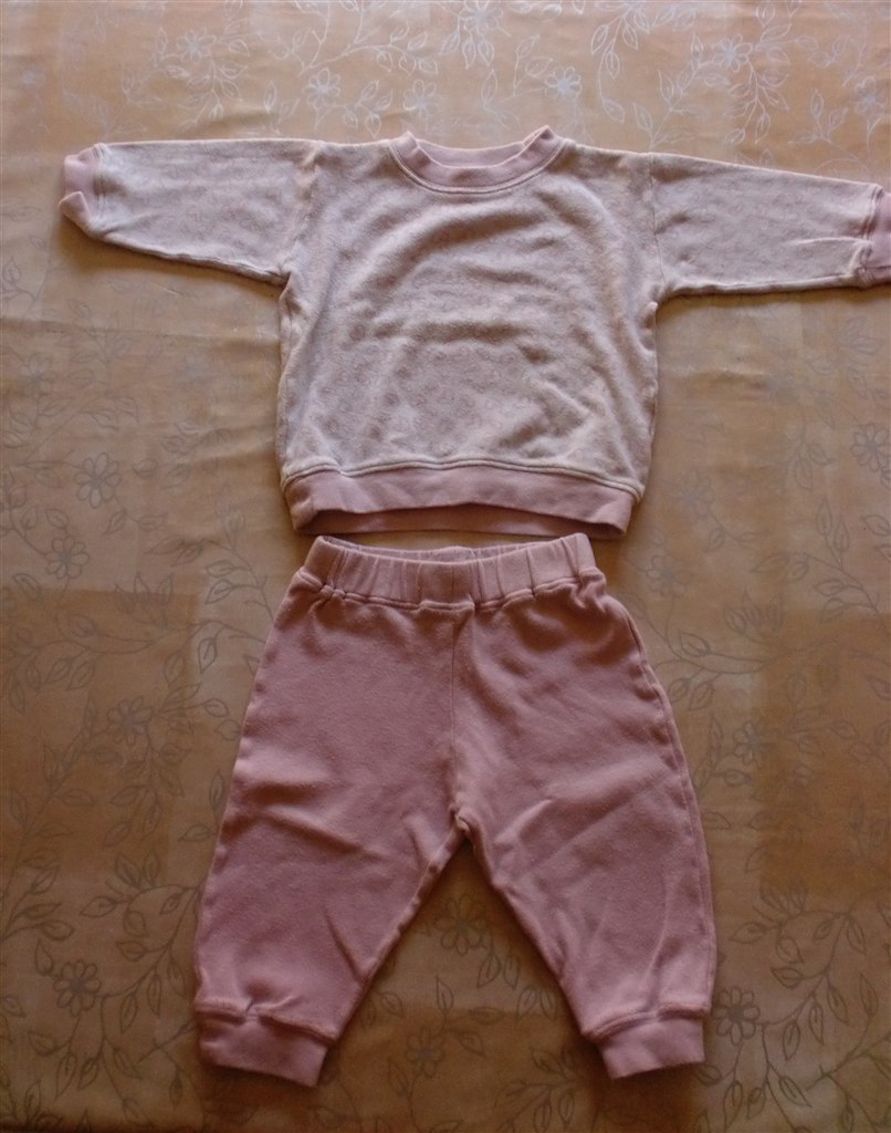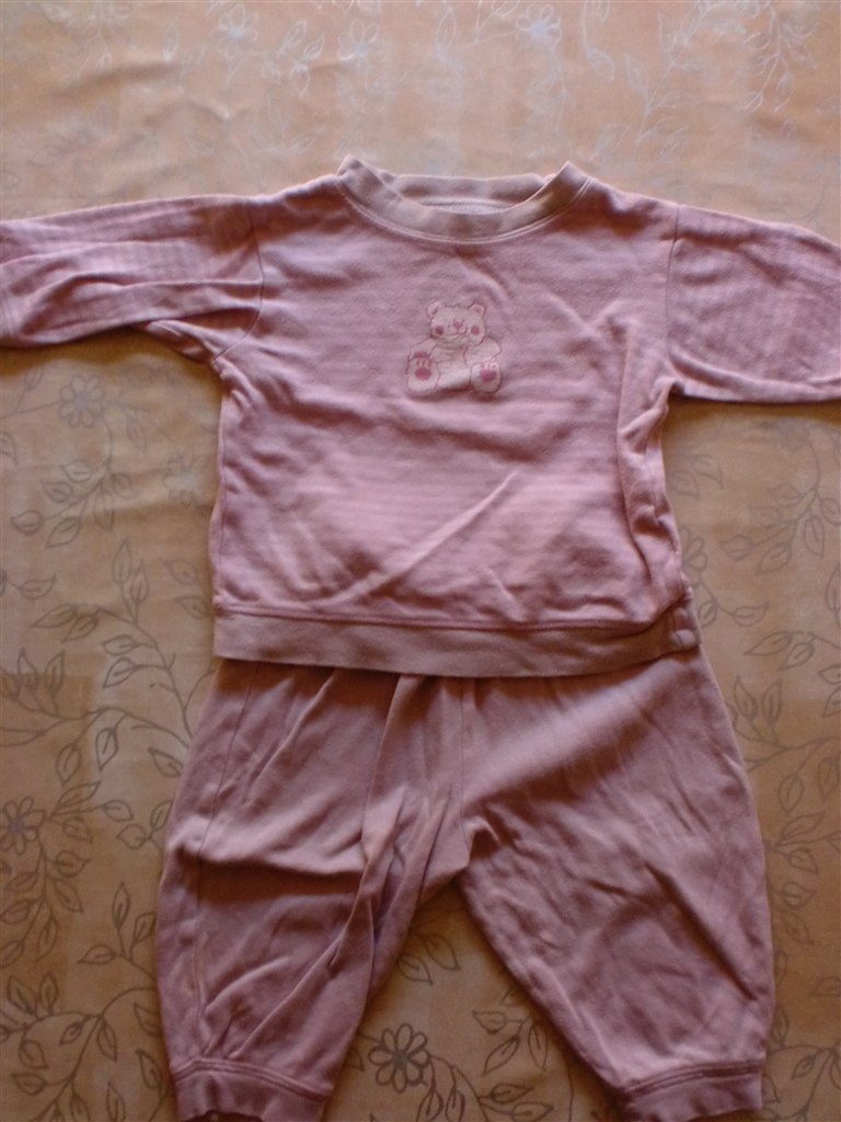Lyserødt nattøjs-sæt fra "LittleOne", str. 74 = 40 kr. for sættet.