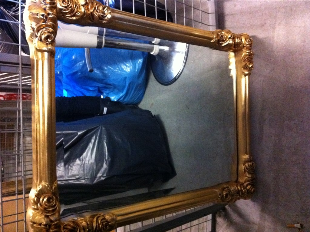 6. Guld farvet spejl - 300 kr (har en revne i en af kanterne, men det ligges der ikke mærke til)