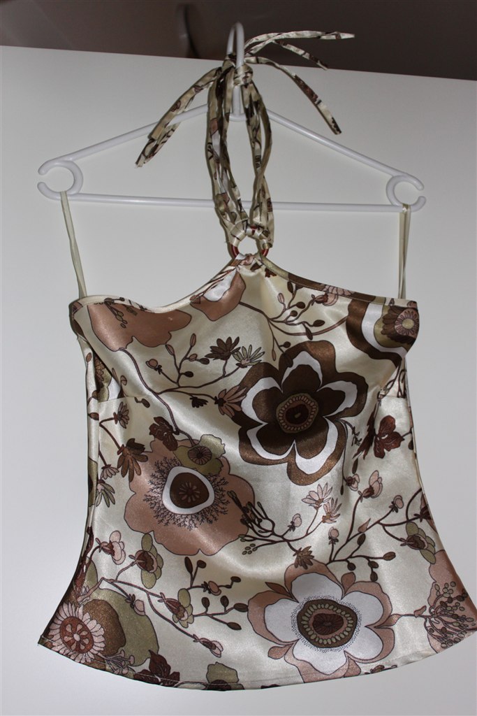 Lækker satin top med halter neck og et lille svaj forneden. Str.S. (Svarer ca. til en str.M) Pris: 50 kr. Passer perfekt til nederdelen fra C.C.D.K str.36. Pris: 100 kr. Billede 3 & 4