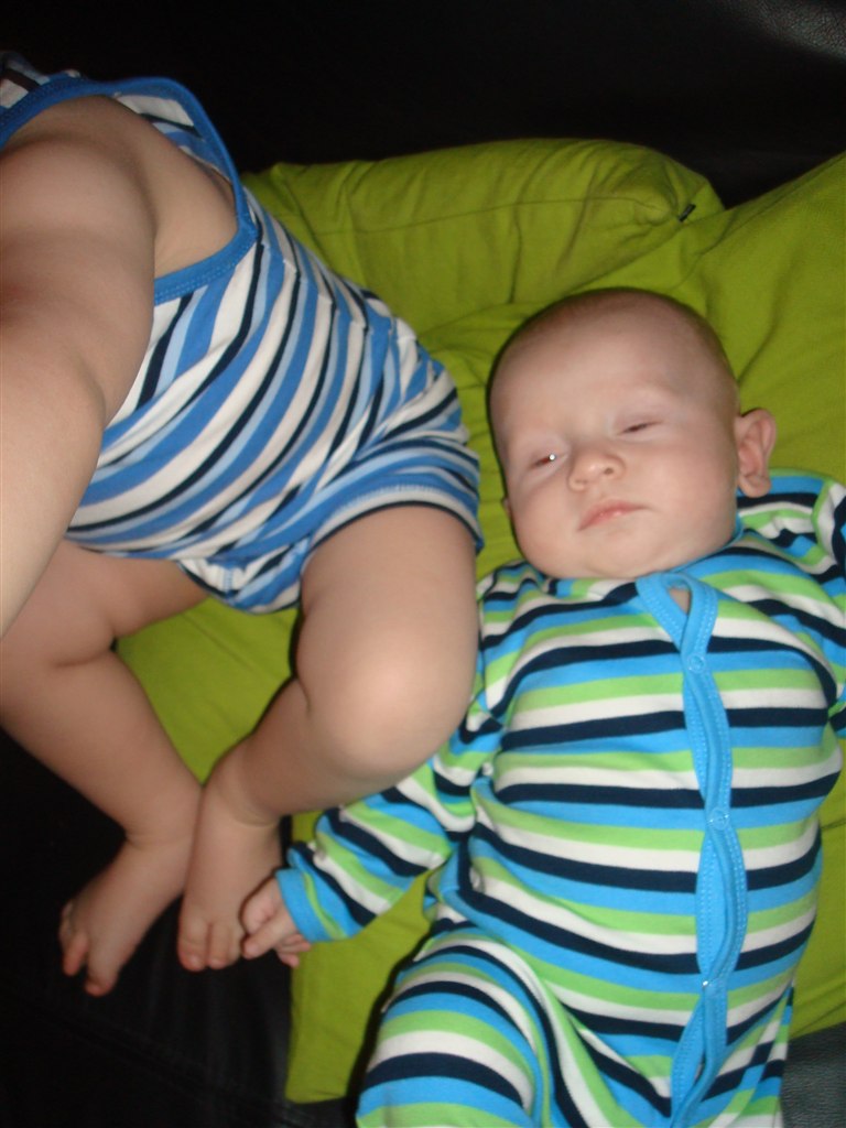 Så piger nu nærmer tiden sig til at Liam bliver hele 4 måneder.. Faktisk blir han 4 måneder d. 16.. - Syntes tiden er gået utrolig stærk og forstår slet ikke at tiden kan gå SÅ hurtigt..!! Syntes tiden gik hurtig med Tino men med Liam der er den simpelthen løbet forbi mig...!! Liam har været meget syg - og vi har langt om længe fundet ud af hvorfor han har været så plaget af smerter i maveregionen.. Han har en indsnevring i endetarmen som gør det svært for afførring at komme ud..!! TRODS flere forskellige slags "kure" med bla. lactolose og Movicol, klyx og sukkervand dagligt er det stadig ikke lykkede os at få en fast afførringsrutine .. Så vi har været på sygehuset 1 gang om måneden for at få hans endetarm filmet så de har kunnet holde øje med den indsnevring gav sig i takt med alderen.. - Men næeee nej desværre.. Tino var jo indlagt i januar med forstoppelse og har også altid døjet med maven.. Jeg har hele mit liv døjet med maven også så nu har både min sp. og læge sat i værk at vi skal til Odense hospital for at gennemgå en masse prøver som højst sandsynlig får den drejning at vi alle tre skal opereres - for at undgå en stomipose - hvilket vil være sidste udvej hvis operationen ikke lykkes..!! Vi er gået over på flaske og han trives og er glad Jeg ammer ham kun 1-2 gange i døgnet men det er KUN hygge, og IKKE et måltid og jeg har fundet mig til rette med at give ham flaske. Jeg kan jo se han bliver tilpas og mæt.. Det resulterer jo så også i at knægten min så er oppe på en dejlig vægt af 6.9kg JEP i læste rigtigt 6.9kg Store basse ..!! Som mange af jer ved kører det ikke mega godt herhjemme - og har ikke gjort det i et stykke tid. - MEN på fredag har jeg fået passet drengene så der skal Rasmus og jeg ha talt ud - og jeg mener virkelig TALT UD om hvad der skal ske, hvorfor Rasmus reagerer som han gør, og hvorfor det hele er endt ud i alt det her roderi...!! Nå men i skal bestemt ikke snydes for billeder I ved jo jeg ikke kan lade vær SÅ HERE GOES