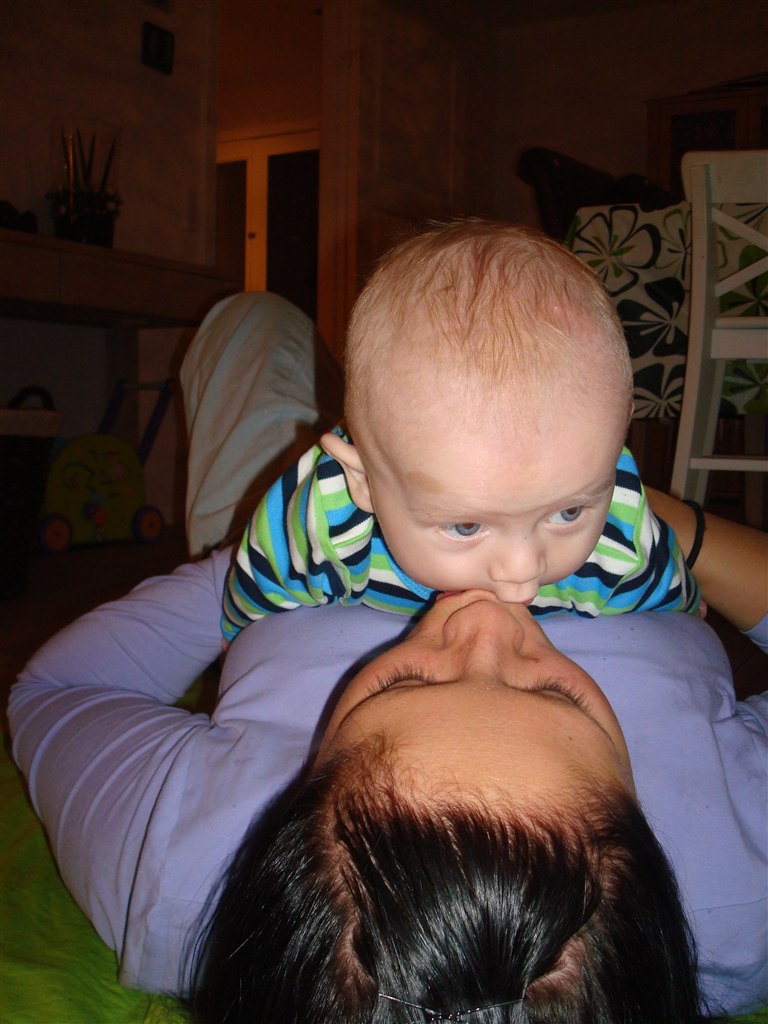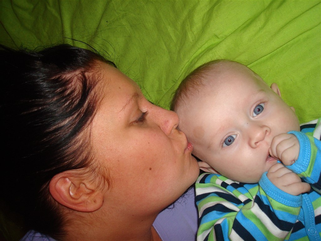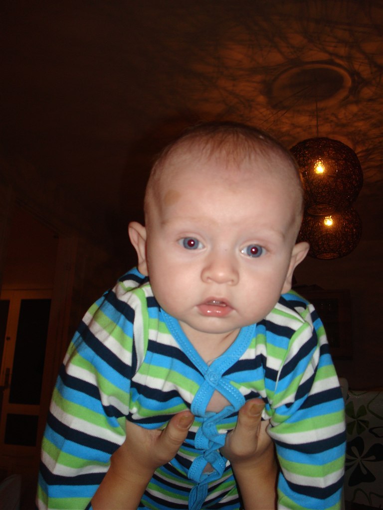 quar20 skriver: Så piger nu nærmer tiden sig til at Liam bliver hele 4 måneder.. Faktisk blir han 4 måneder d. 16.. - Syntes tiden er gået utrolig stærk og forstår slet ikke at tiden kan gå SÅ hurtigt..!! Syntes tiden gik hurtig med Tino men med Liam der er den simpelthen løbet forbi mig...!! Liam har været meget syg - og vi har langt om længe fundet ud af hvorfor han har været så plaget af smerter i maveregionen.. Han har en indsnevring i endetarmen som gør det svært for afførring at komme ud..!! TRODS flere forskellige slags "kure" med bla. lactolose og Movicol, klyx og sukkervand dagligt er det stadig ikke lykkede os at få en fast afførringsrutine .. Så vi har været på sygehuset 1 gang om måneden for at få hans endetarm filmet så de har kunnet holde øje med den indsnevring gav sig i takt med alderen.. - Men næeee nej desværre.. Tino var jo indlagt i januar med forstoppelse og har også altid døjet med maven.. Jeg har hele mit liv døjet med maven også så nu har både min sp. og læge sat i værk at vi skal til Odense hospital for at gennemgå en masse prøver som højst sandsynlig får den drejning at vi alle tre skal opereres - for at undgå en stomipose - hvilket vil være sidste udvej hvis operationen ikke lykkes..!! Vi er gået over på flaske og han trives og er glad Jeg ammer ham kun 1-2 gange i døgnet men det er KUN hygge, og IKKE et måltid og jeg har fundet mig til rette med at give ham flaske. Jeg kan jo se han bliver tilpas og mæt.. Det resulterer jo så også i at knægten min så er oppe på en dejlig vægt af 6.9kg JEP i læste rigtigt 6.9kg Store basse ..!! Som mange af jer ved kører det ikke mega godt herhjemme - og har ikke gjort det i et stykke tid. - MEN på fredag har jeg fået passet drengene så der skal Rasmus og jeg ha talt ud - og jeg mener virkelig TALT UD om hvad der skal ske, hvorfor Rasmus reagerer som han gør, og hvorfor det hele er endt ud i alt det her roderi...!! Nå men i skal bestemt ikke snydes for billeder I ved jo jeg ikke kan lade vær SÅ HERE GOES