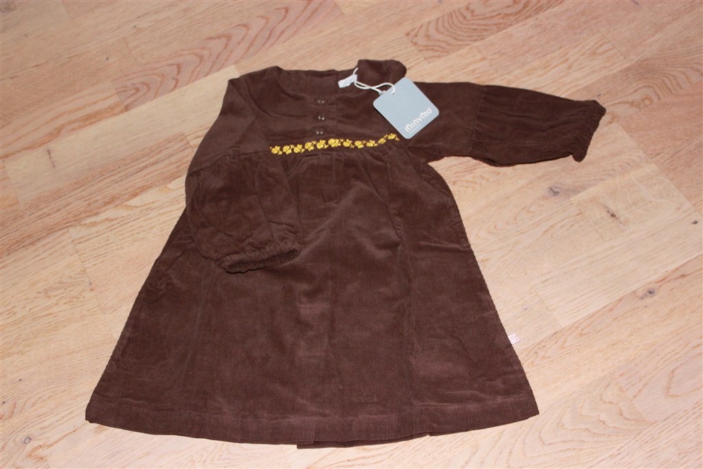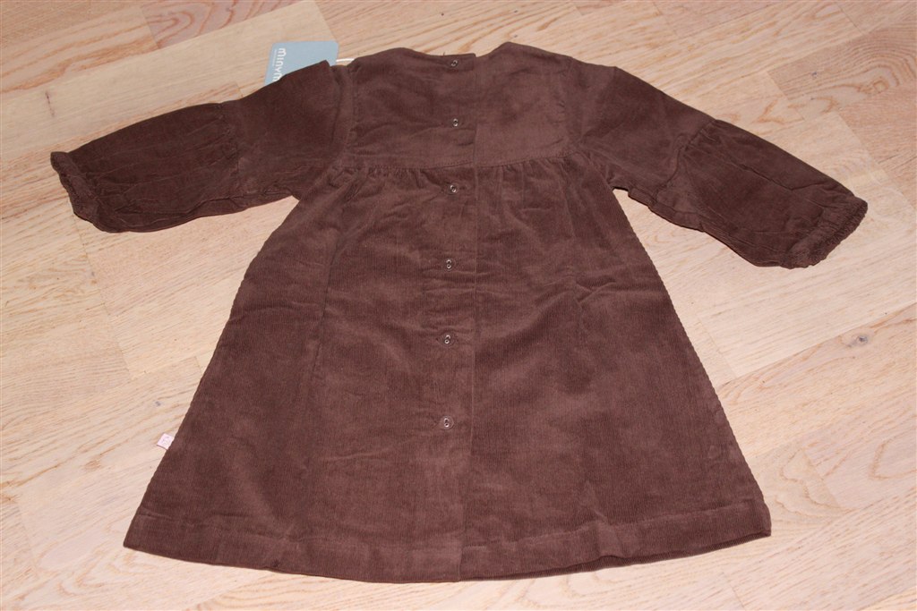 Sød brun fløjls kjole med knapper i ryggen og tre knapper foran samt en fin blomster række lige under brystet syet med guldtråd. Aldrig brugt! Fra ikke ryger og dyrfri hjem. Pris: 160,00