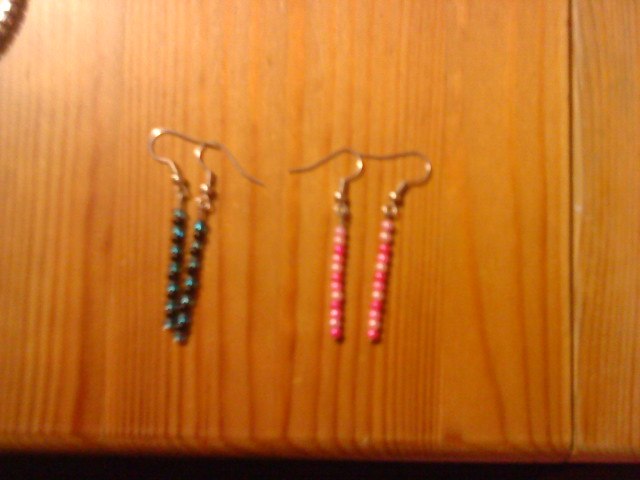 Billede nr. 1 - Sort/blå - Lyserøde øreringe.