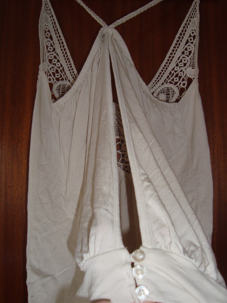 Har flot sommerfuglemønster på brystet og er åben i ryggen (se billede).