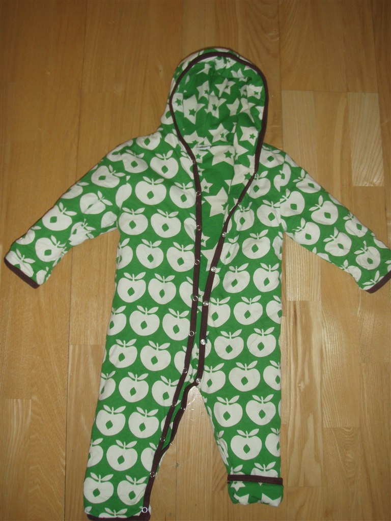 Hvad siger du til 150,- plus porto? - Den er lavet af 100% bomuld i 2 lag med et tyndt lag vat imellem, så den er ikke meget varm, vil nok betegne den som en overgangsdragt.