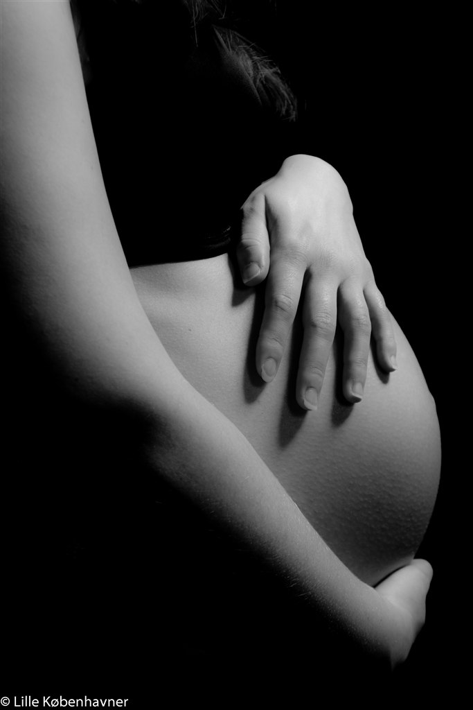 Jeg mødte op i løst tøj, så der ikke var mærker efter tøj overalt på kroppen. Fik taget de traditionelle billeder af maven i sort undertøj, men fik også taget et par i jeans og tanktop.