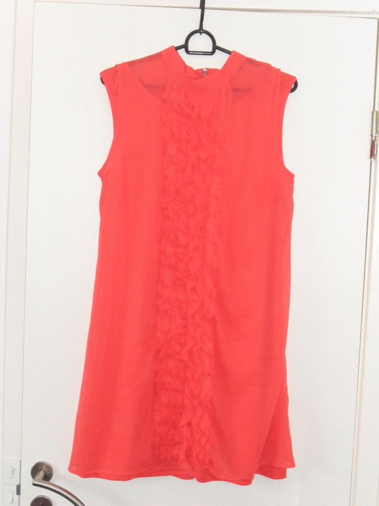 billed 3 = kjole med flæser koral rød fra vero moda str XL