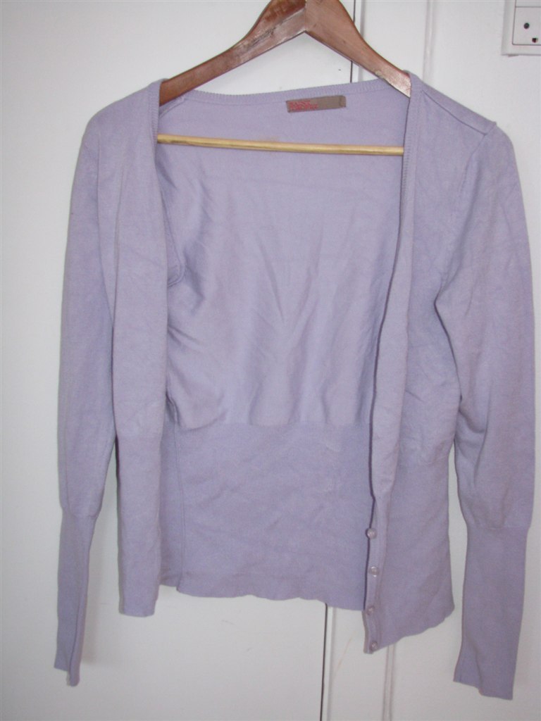 Billede 4 Lilla cardigan fra Saint Tropez - ny men har et lille rustmærke øverst i nakken. SOLGT