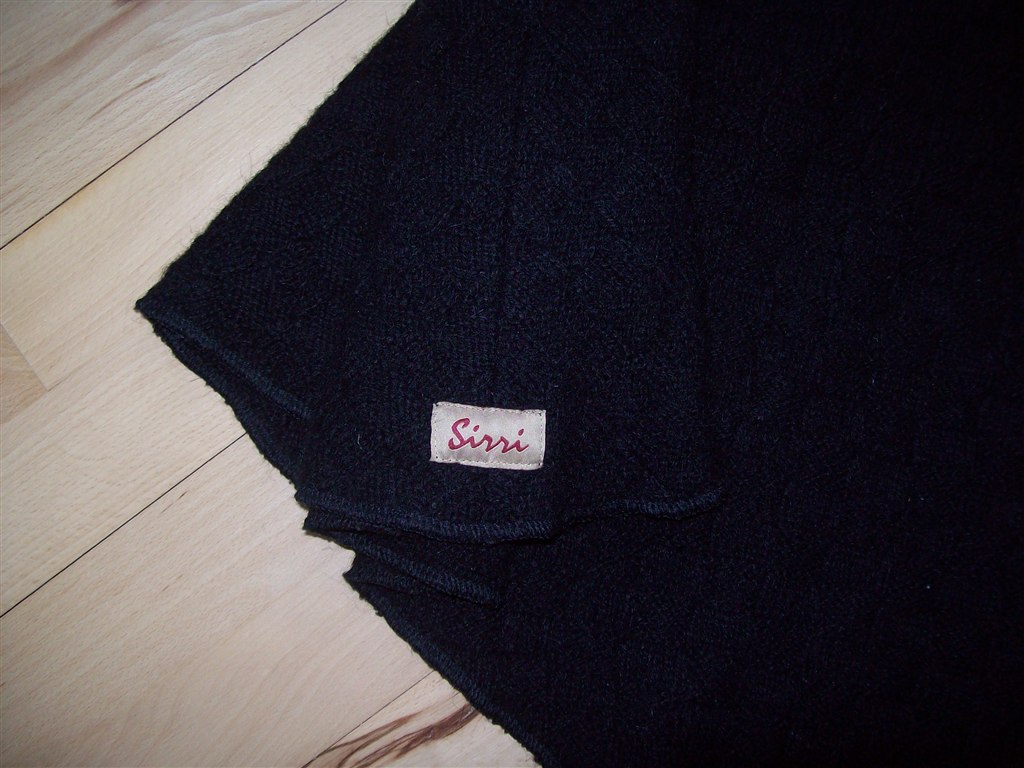 Den er jo ikke kulsort... men gråsort (ses nok bedst på det første billede) da der er sådan noget økologisk uldgarn den er strikket med