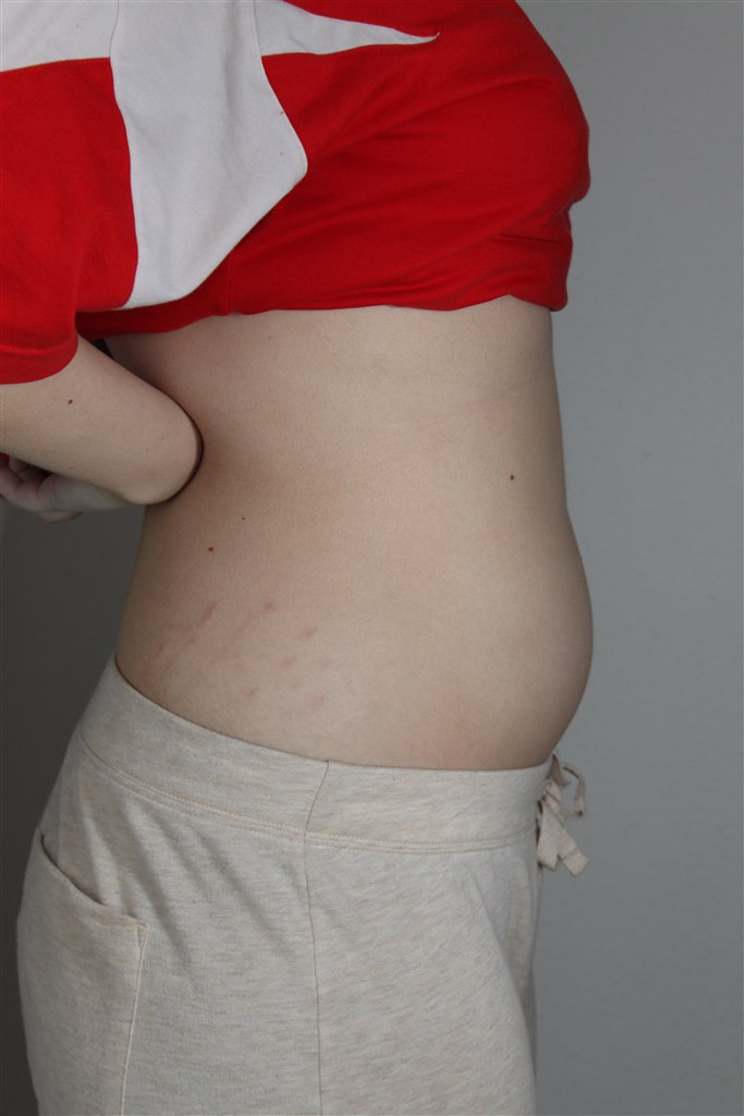 Astasmor skriver: fin mave. man kan lige se en lille bule.