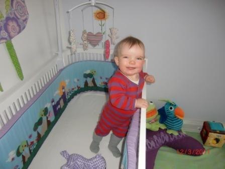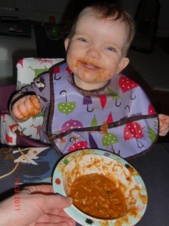 Hun sover på sit eget værelse, men kommer stadig ind til mig sidst på natten. Jeg ammer hende kun om dagen nu og det er en dejlig hyggestund for os begge. Hun er heldigvis blevet mere interesseret i mad og spiser nu pænt store portioner.