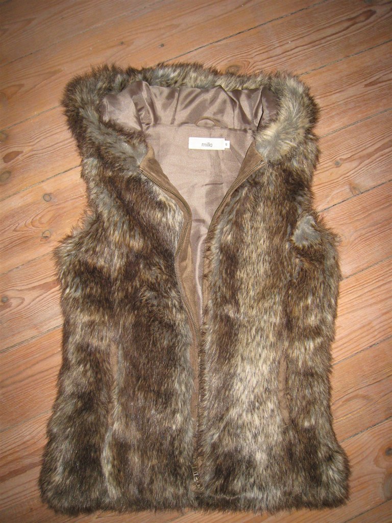 Pels vest i brune farver er med lynlås og skjulte lommer i siderne. str.34/S