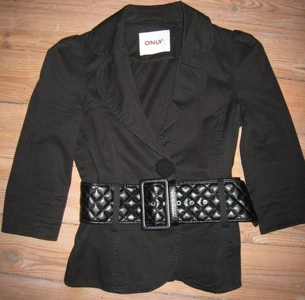 Lille blazer jakke med 3/4 ærme og fedt bælte str. xs fra ONLY knapper og sorte og hæklet rigtig fed jakke!