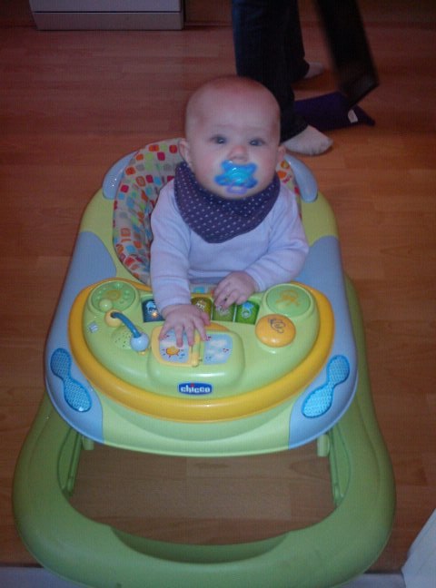 Han begyndte også at gå da han var 10 mdr, så det var heller ikke meget jeg nåede at sætte ham i den..