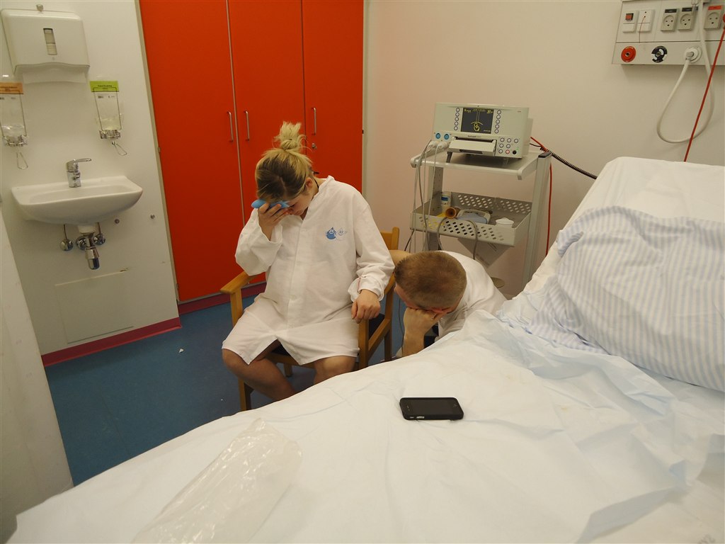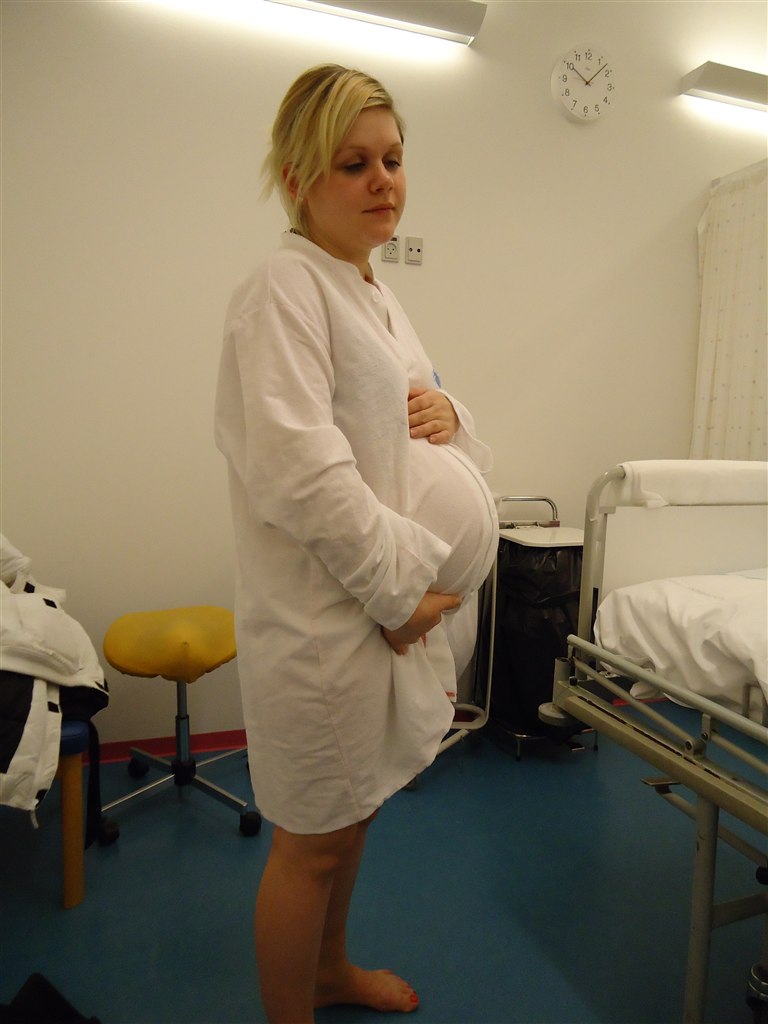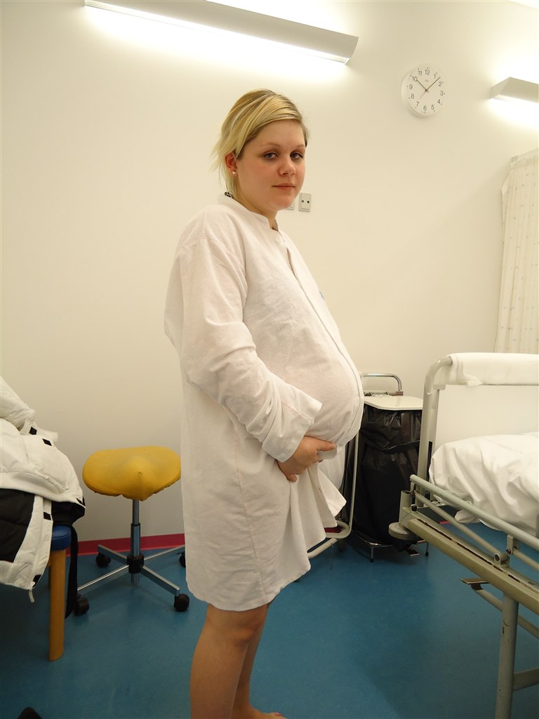 Da vi så står i elevatoren op til fødemodtagelsen kan jeg mærke jeg blir en smule våd mellem benene. vandet sev nu en smule. vi blev vist ind på vores stue igen og jeg skulle så undersøges igen og lige det jeg lagde mig ned i sengen gik vandet der var kl 20.30. jeg fik så den strimmel på maven og skulle så bare vente. det så fint ud og blev fri igen. veerne var stadig stykke så fik tilbud om at jeg kunne gå i brugse bad da de ikk havde badekar på mødemodtagelsen så det gjorde jeg så og det var rigtig dejligt. Da jeg så kom ud igen gik der ikk ret lang tid før veerne var så slemme at jeg ikk kunne holde dem ud mere uden noget smertestillende så vi kaldte en jdm for at høre hvornår jeg kunne komme på fødegangen så jeg kunne få noget og hun sagde ¨så der godt kunne gå noget tid endnu men jeg kunne få noget morfin hvis jeg havde lyst men så skulle hun bare lige køre den strimmel igen inden og det gjorde hun så men hans puls var begynd og dykke så nu måtte jeg desværre ikk få morfin :-S nå men der gik ikk så lang tid så kom hun ind og sagde nu skulle jeg ned på fødegangen så kunne jeg få noget lattergas der. der var kl 1. Weeeee tænkte jeg.