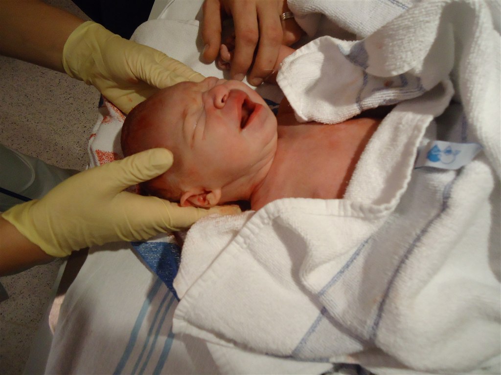 Kl 03.30 begynder jeg så og få presseveer men måtte ikk presse da lillemanden ikk ville komme langt nok ned til at jeg kunne presse ham ud så skulle bare gispe. puha det var hårdt.Men heldigvis fik jeg lov og presse engang imellem.