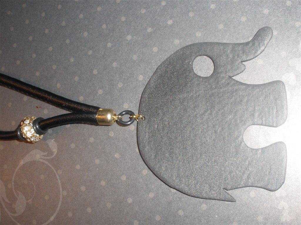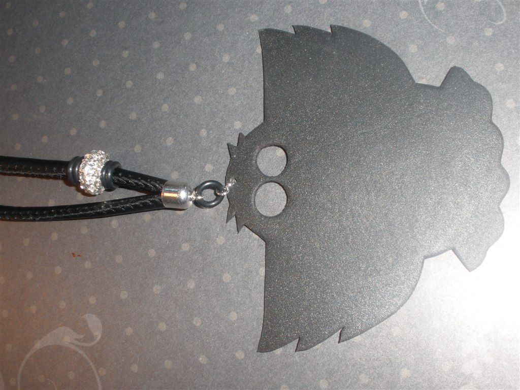 2 stk halskæder i "lammeskind" med ugle eller ellfant som er lavet i "gummi" det føles som noget tynt skind/læder men er gummi det kan vaskes af hvis det skal blive beskit .