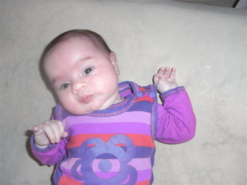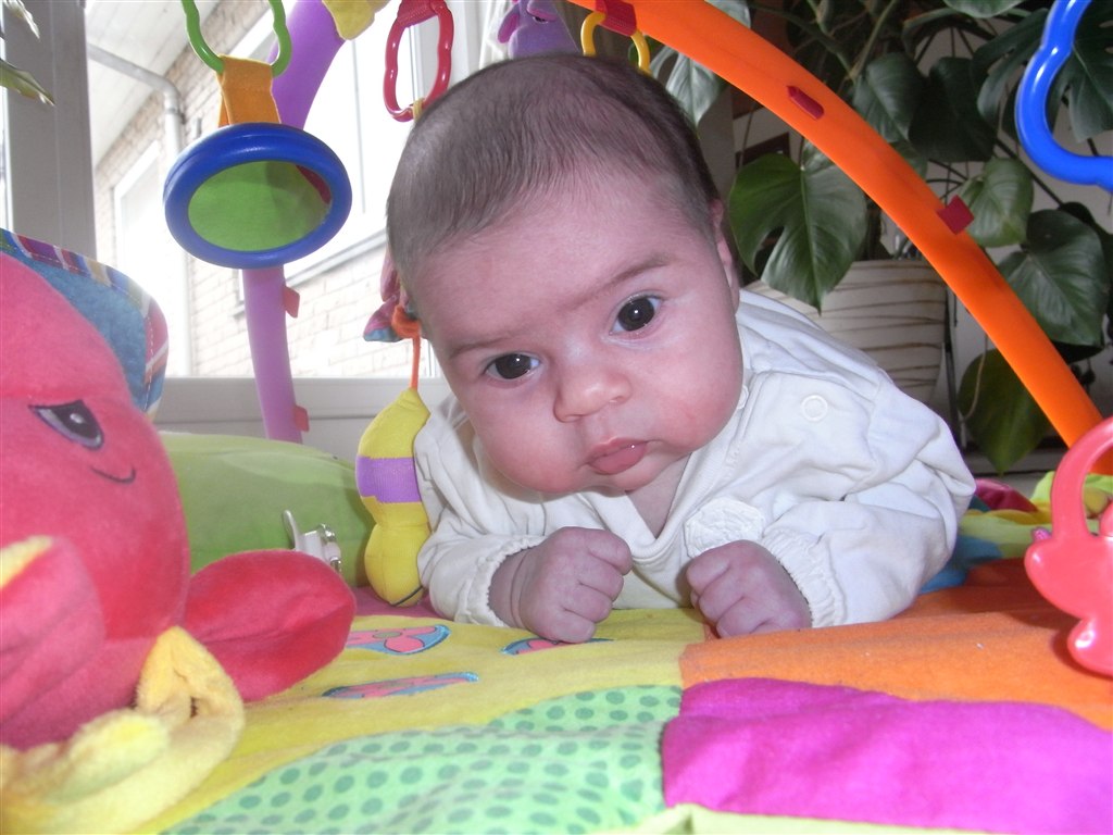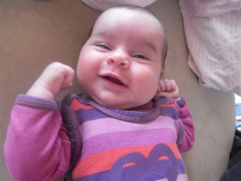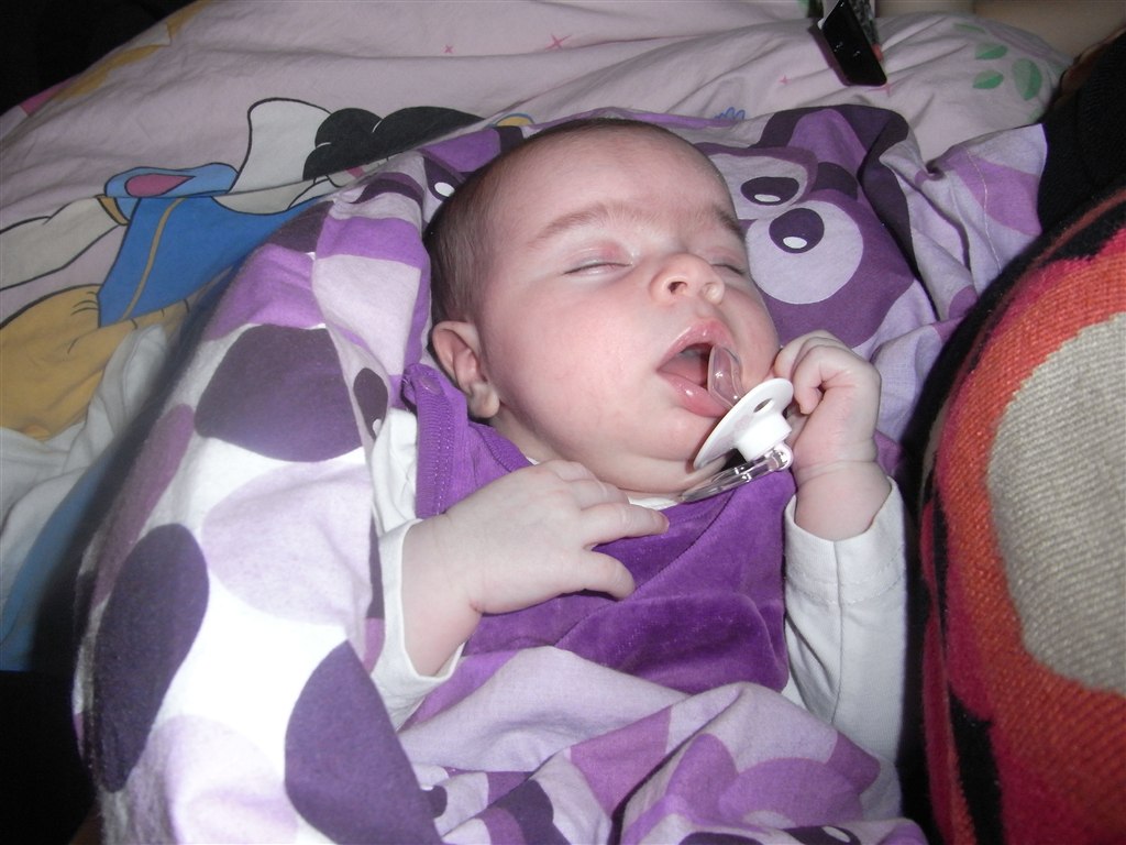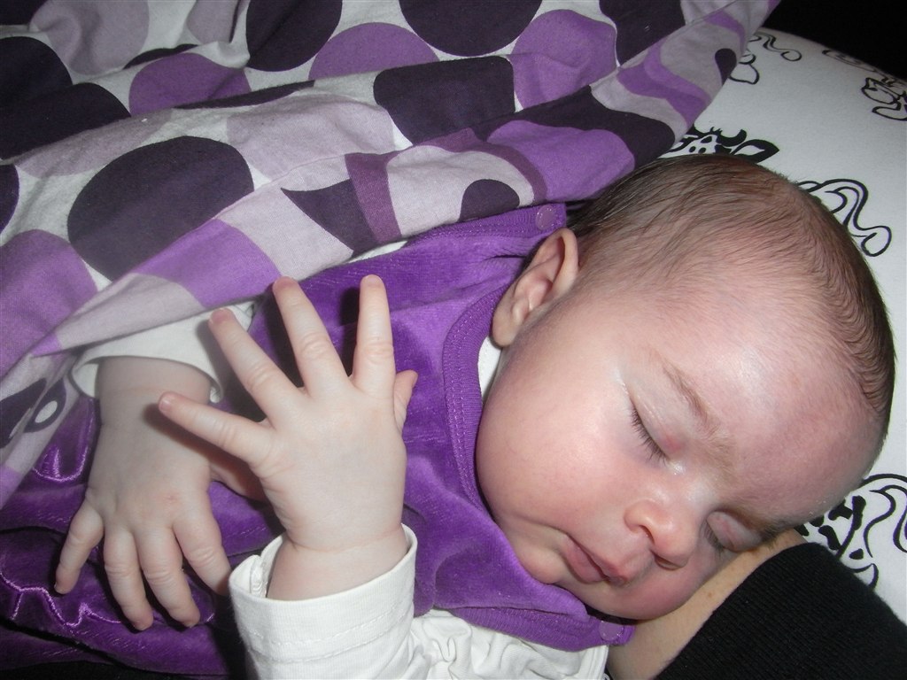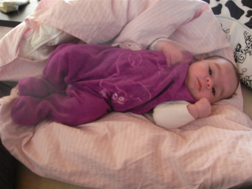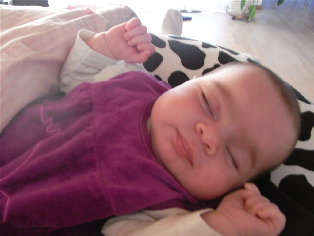 Dagen svinger stadig en del, men de sidste par uger har hun sovet 4-4½ time i træk, men tidspunktet svinger lidt. Som regel er det dog fra ca. kl. 10 til ca. kl. 14. Så sover hun til gengæld heller ikke ret meget mere resten af dagen - måske kun lige en enkelt powernap på et kvarter i mine arme sidst på dagen.